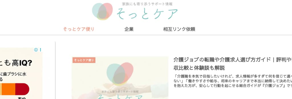 『そっとケア』様は、介護や高齢者支援に関する情報を発信し、家族や介護従事者の悩みに寄り添うサイトです。