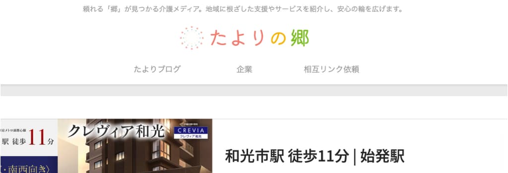 『たよりの郷』様は、介護や福祉の分野で働く人や利用する人に向けた情報を発信しているサイトです。